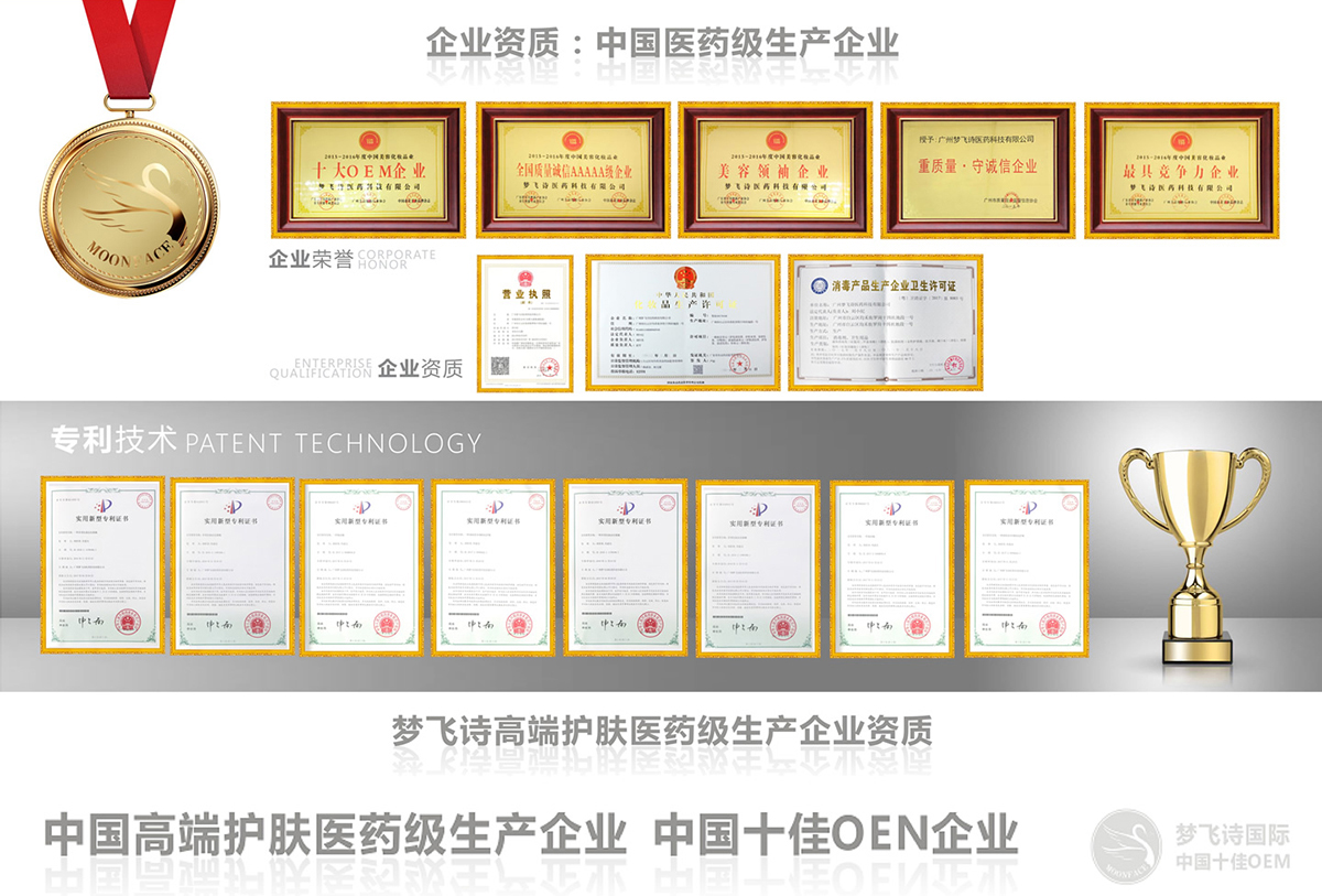 廣州夢(mèng)飛詩(shī)醫(yī)藥科技有限公司(簡(jiǎn)稱:夢(mèng)飛詩(shī))、占地2萬(wàn)多平方米、是一家產(chǎn)品研發(fā)、生產(chǎn)、銷售、品牌策劃與市場(chǎng)營(yíng)銷管理、國(guó)際學(xué)術(shù)交流為一體的大型股份企業(yè)、專業(yè)OEM/ODM/OBM為國(guó)內(nèi)外客戶打造護(hù)膚高端品牌、發(fā)展至今、擁有中國(guó)個(gè)人護(hù)理品最完整、最豐富的產(chǎn)品品類、產(chǎn)品覆蓋日化線、專業(yè)線、電子商務(wù)、微商、電視購(gòu)物、直銷等主流渠道、品牌客戶超過(guò)6000個(gè),成就中國(guó)高端護(hù)膚品類研發(fā)、加工第一平臺(tái)!